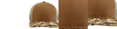 - Charcoal & Saddle with a mesh back color are 100% brushed cotton twill fronts panels and bill/100% polyester, soft trucker